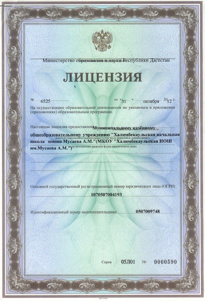 | Полное наименование образовательной организации* | Муниципальное казенное общеобразовательное учреждение Халимбекаульская начальная общеобразовательная школа имени Мусаева А.М. |
