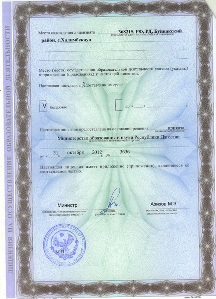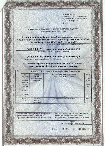 | Адрес местонахождения образовательной организации* | 368215, Буйнакский район, с.Халимбекаул ул.Джамалутдинова д.3 |